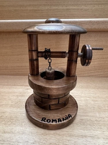 Vintage Wood Carved Handmade Water Well Decor Souvenir Romania Folk Art Romanian