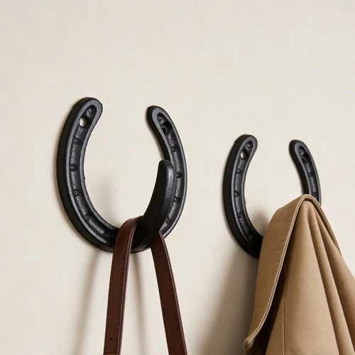 Horseshoe Wall Hook Cast Iron Black Vintage Design for Mudroom Entryway