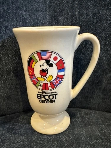 Vintage Walt Disney World Epcot Center Mickey Mouse World Flags Ceramic Mug 5”