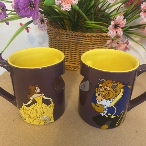 Disney Parks Beauty and The Beast Ceramic Coffee Mug Set of 2 -12 0z EX CND!