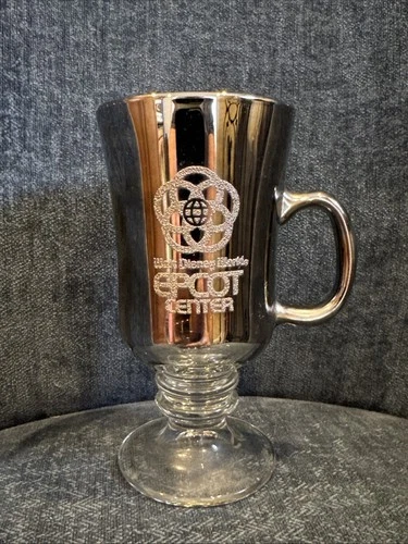 VTG Walt Disney World Epcot Center Smoked Silver Mirror Glass Mug 6” w/ Handle
