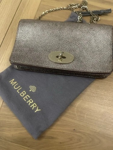Authentic Mulberry Metallic Mushroom Bayswater Clutch Bag Gold hardware Dust Bag