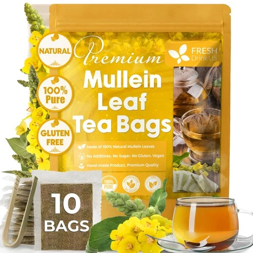 FreshDrinkUS, Premium 10 Mullein Leaf Tea Bags For Lungs, 100% 10