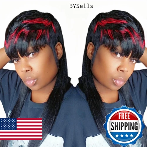 SAEIALL Mullet Wig for Black Women Human Hair Pixie Cut Wig Long Straight Mullet