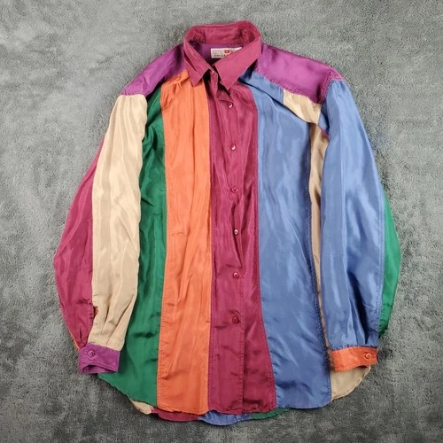 Stunt Collections Shirt Mens S Multi Silk Colorblock Button Up Vintage