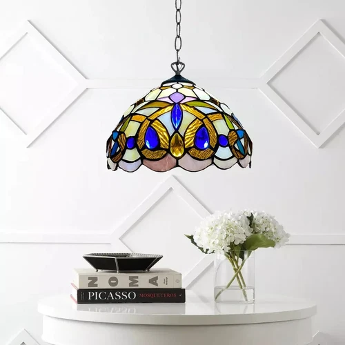 Tiffany Style Pendant Lamp 10" Stained Glass Ceiling Light Multicolour Shade UK