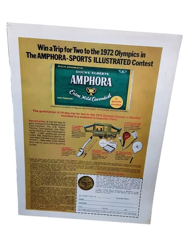1972 Amphora Pipe Tobacco 72 Olympics Original Print Ad decor