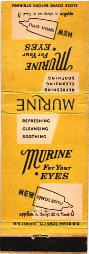 Murine For Your Eyes, New Squeeze Bottle, Eye Drops, Vintage Matchbook Cover