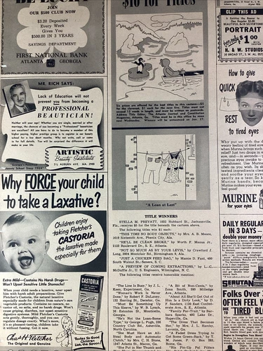 Atlanta GA Print Ad 1952 AJC Beauty School Auburn Ave Castoria Murine Cartoon