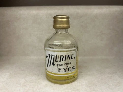 Vtg Apothecary MURINE Eye Medicine Glass Bottle Painted Label No Dropper Sealed