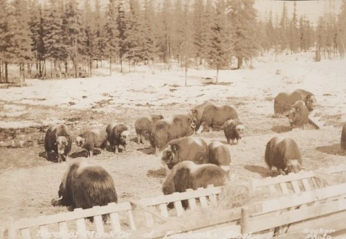 Alaska Musk Ox Herd Fairbanks AK Becker Photo 1930s - Original Photo