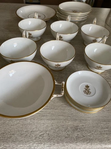 Antique Emperor Napoleon III Sèvres Porcelain 6-Cup Tea Set with Saucers, Desse