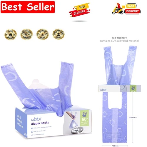 Disposable Nappy Sacks, Lavender Scented, Easy-To-Tie Tabs, Durable, Thick Ba...