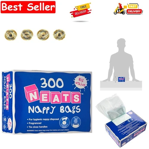 Neats - Nappy Bags, 300 Bulk Box, Tie Handle Disposable Sacks for Nappies, Wi...