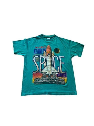 VTG NASA Kennedy Space Center Green Graphic T Shirt Size Large 90s
