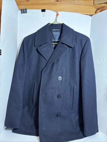Nautica Mens Dark Navy Wool Blend Lined Double Breasted Peacoat Size L