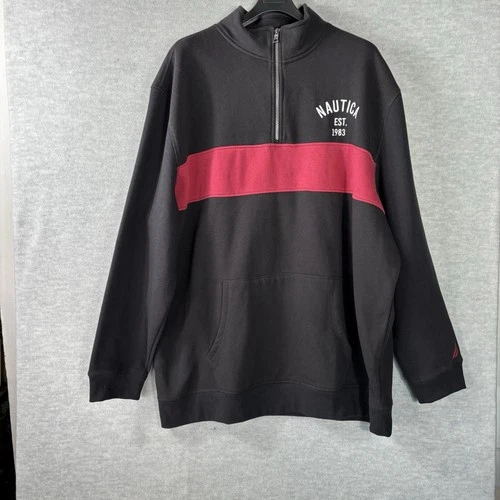 Nautica Pullover Sweatshirt Men’s SZ 3 XL Black 1/4 Zip Logo Color block Fleece