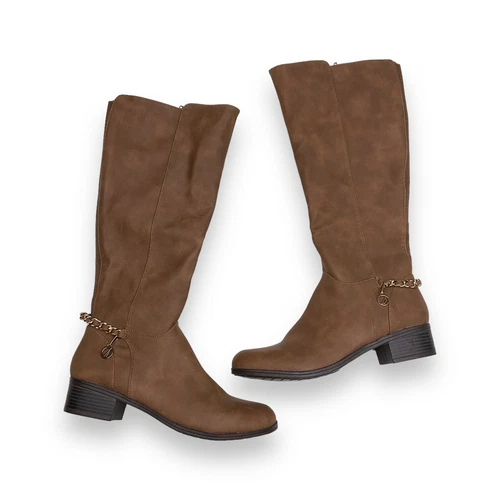 Nautica Womens Rebeka Brown Knee High Chain Embellished Zip Boots Size 9.5 NWOB