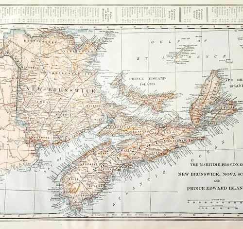 1914 New Brunswick Nova Scotia PEI Map Canada Maritime Provinces Collectible