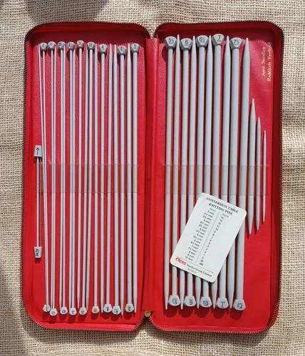 Aero Knitting needle set in case. Vintage Metric needles with accessories.
