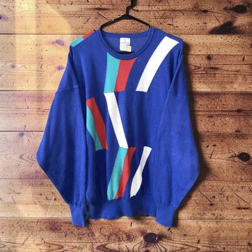 Vintage 80s Neiman Marcus Knit Sweater Mens Large Cotton Made in England Golf