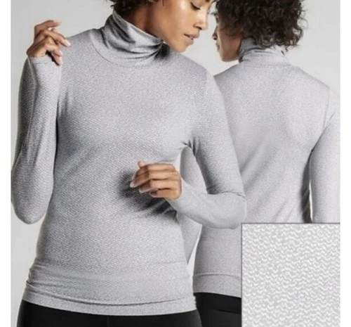EUC! Athleta Flurry Peak Fitted Turtleneck in Light Grey/White, Size Medium