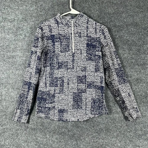 IBKUL Top Womens Small Blue Abstract Long Sleeve Golf Vented Breathable Light