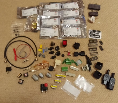 Electronic Components Job Lot Motors Plugs IC Sockets Switches Knobs Clips Solar