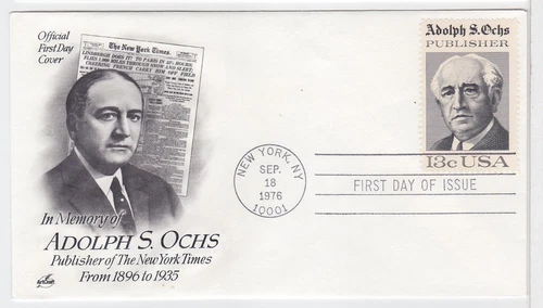 TurtlesTradingPost- Adolph Ochs 1976 #1700 FDC- Artcraft Cachet - Hand Cancel