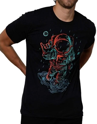 Into The AM Glow in the Dark Graphic Black Tee T shirt Astronaut Space Mens 3XL