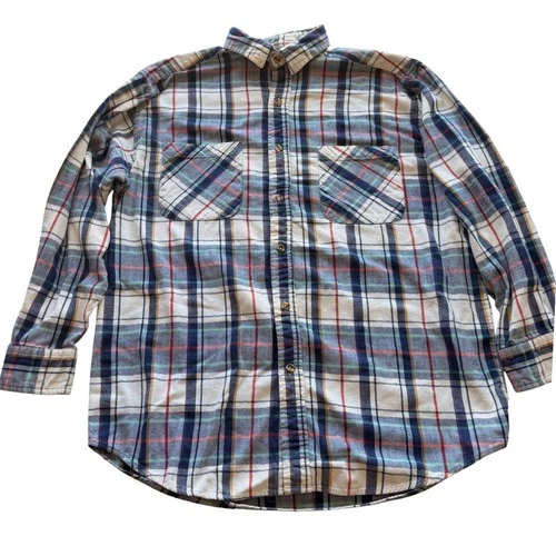 Vintage 70s Big Mac Workwear Mens Flannel Shirt Large Big Blue Green Plaid Chore