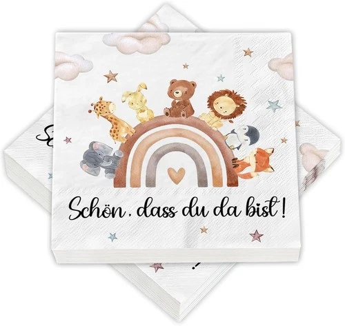 40 Birthday Napkins "Nice that you are here" colorful animal motifs