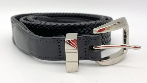 Mans Belt Black Fine Braided Leather Southwest Style Nickle Buckle Size 40 Nice