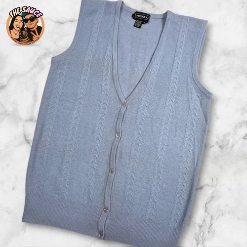 VTG Lambswool Rabbit Hair Cable Knit V Neck Button Up Sweater Vest Womens Small