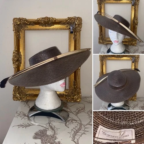 Genevieve Louis by Nigel Rayment Taupe Wide Boater Statement Hat Real Quill Trim