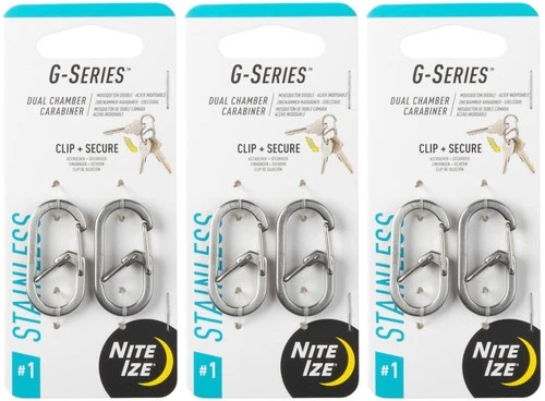 Nite Ize 2-Pack G-Series Dual Chamber S.S. Carabiner #1 - Stainless (3-Pack)