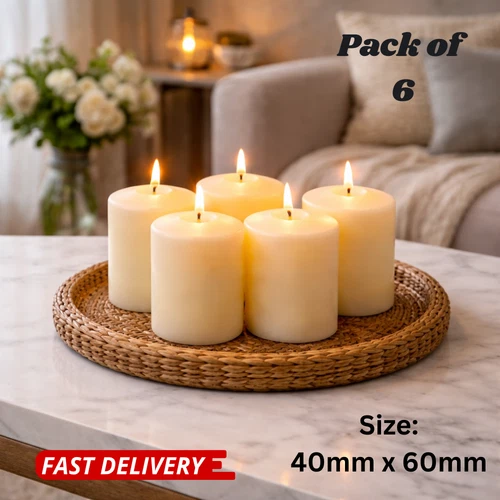 Pack of 6 Pillar Candles Table Wedding Décor Event Church Long Burn Time 40x60mm