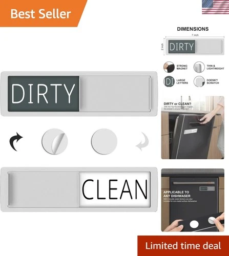 Dishwasher Magnet Clean Dirty Sign, Easy to Read and Slide On, Non-Scratch Stro