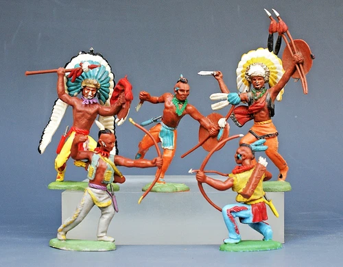 Britains Swoppet Indians - Group of 5 Dismounted (Includes 2 Chiefs)