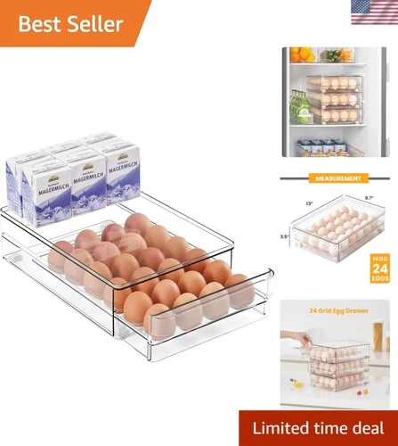 Family-Friendly 24-Egg Drawer - Safe Pull-Out Organizer with Non-Slip Stability