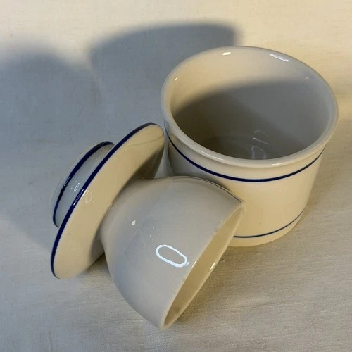 Norpro Butter Keeper French Bell Stoneware Dish Crock Kitchen blue stripe 4 Inch