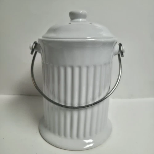 Norpro Ceramic Compost Keeper Bin White 1 Gallon Countertop Crock with Filter