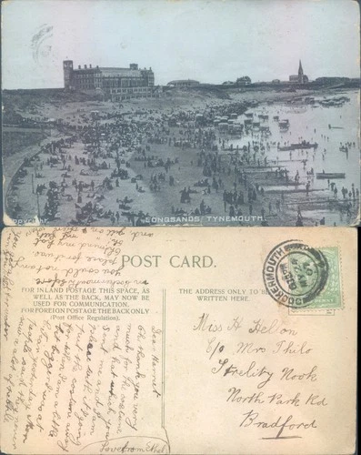 Longsands beach with crowds and buildings in Tynemouth North East England 1907