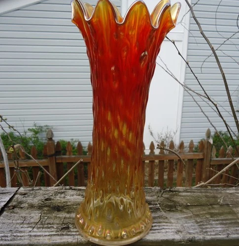 Vintage Northwood Marigold Carnival Glas Midsize Tree Trunk Vase