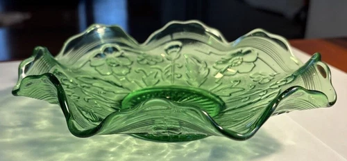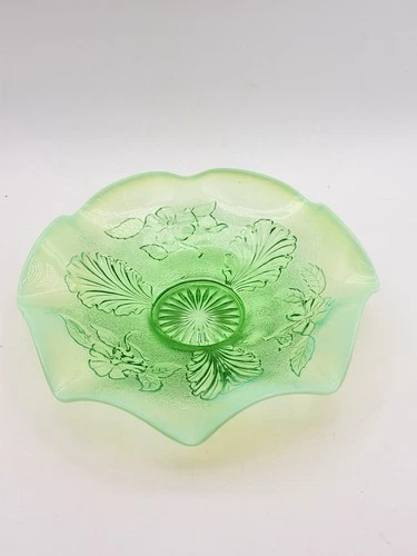 Antique Northwood Poppy Scroll/ Variant Green Glass Candy Dish EAPG c.1908