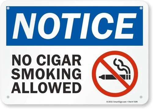 SmartSign "Notice - No Cigar Smoking Allowed" Sign | 7" x 10" Plastic