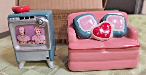 NIB- I Love Lucy Chocolate Factory Episode-Salt & Pepper Shakers-Couch & TV