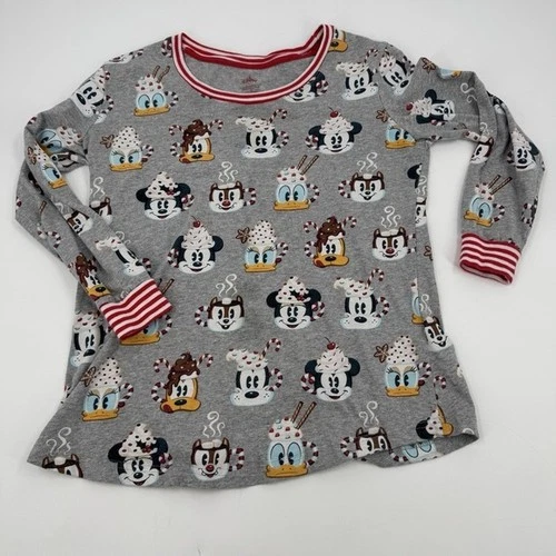 Disney Mickey Friends Hot Cocoa Pajama Sleepshirt Top Girls M Long Sleeve Gray