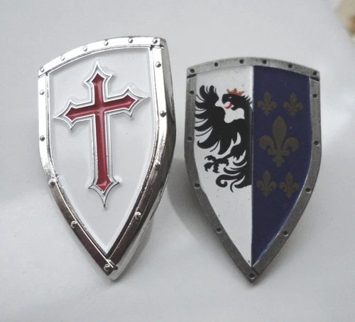 2 x Knights Shield Cross Pin Badge Mediaeval European Middle Ages Christian