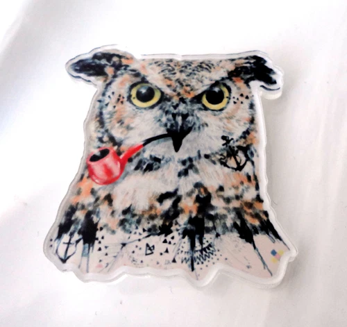 ZPs Owl with Pipe Quirky Kitsch Shabby Chic Retro Deco Pin Badge Brooch Acrylic